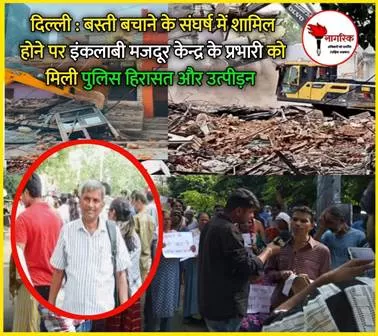 दिल्ली : बस्ती बचाने के संघर्ष में शामिल होने पर इंकलाबी मजदूर केन्द्र के प्रभारी को मिली पुलिस हिरासत और उत्पीड़न